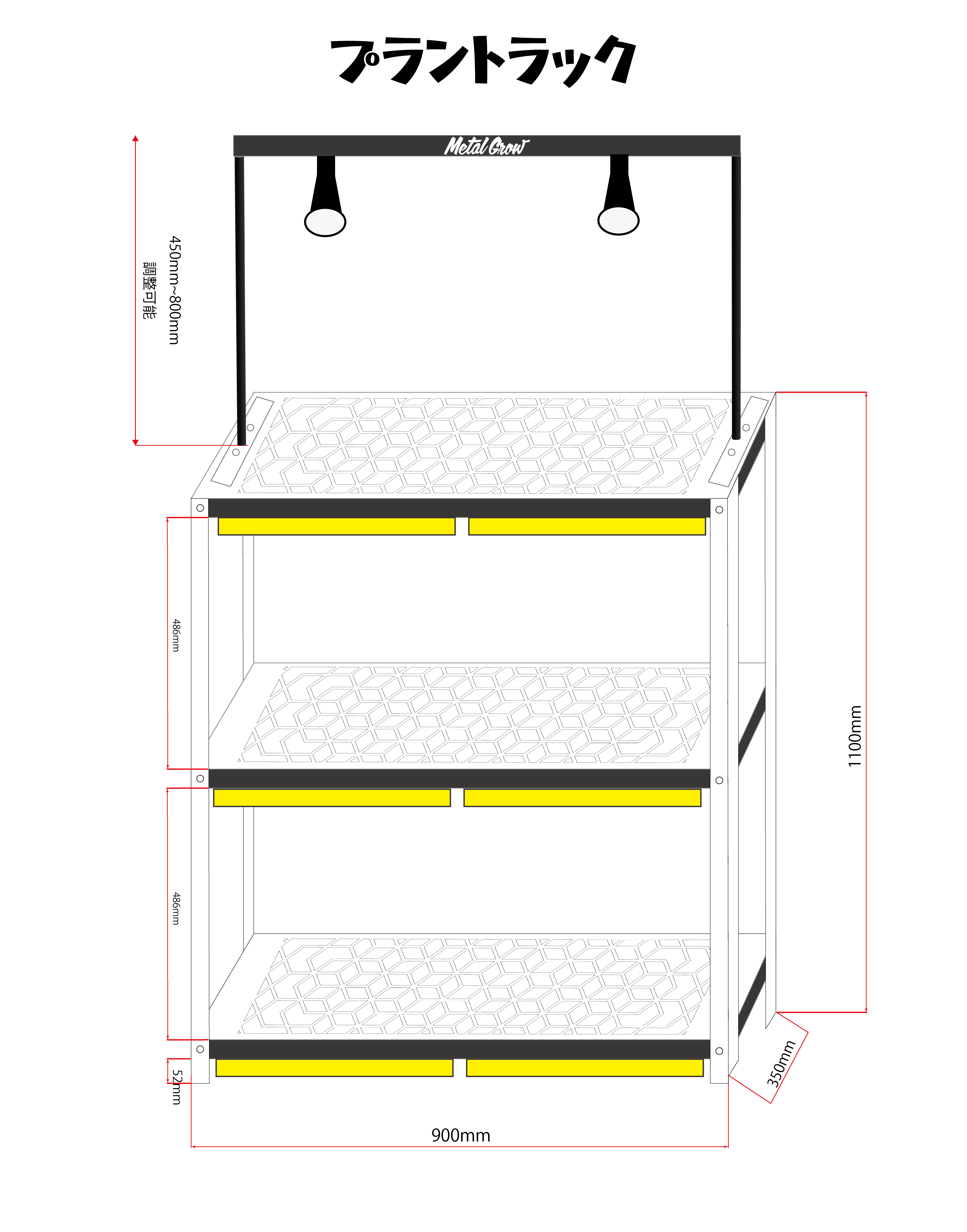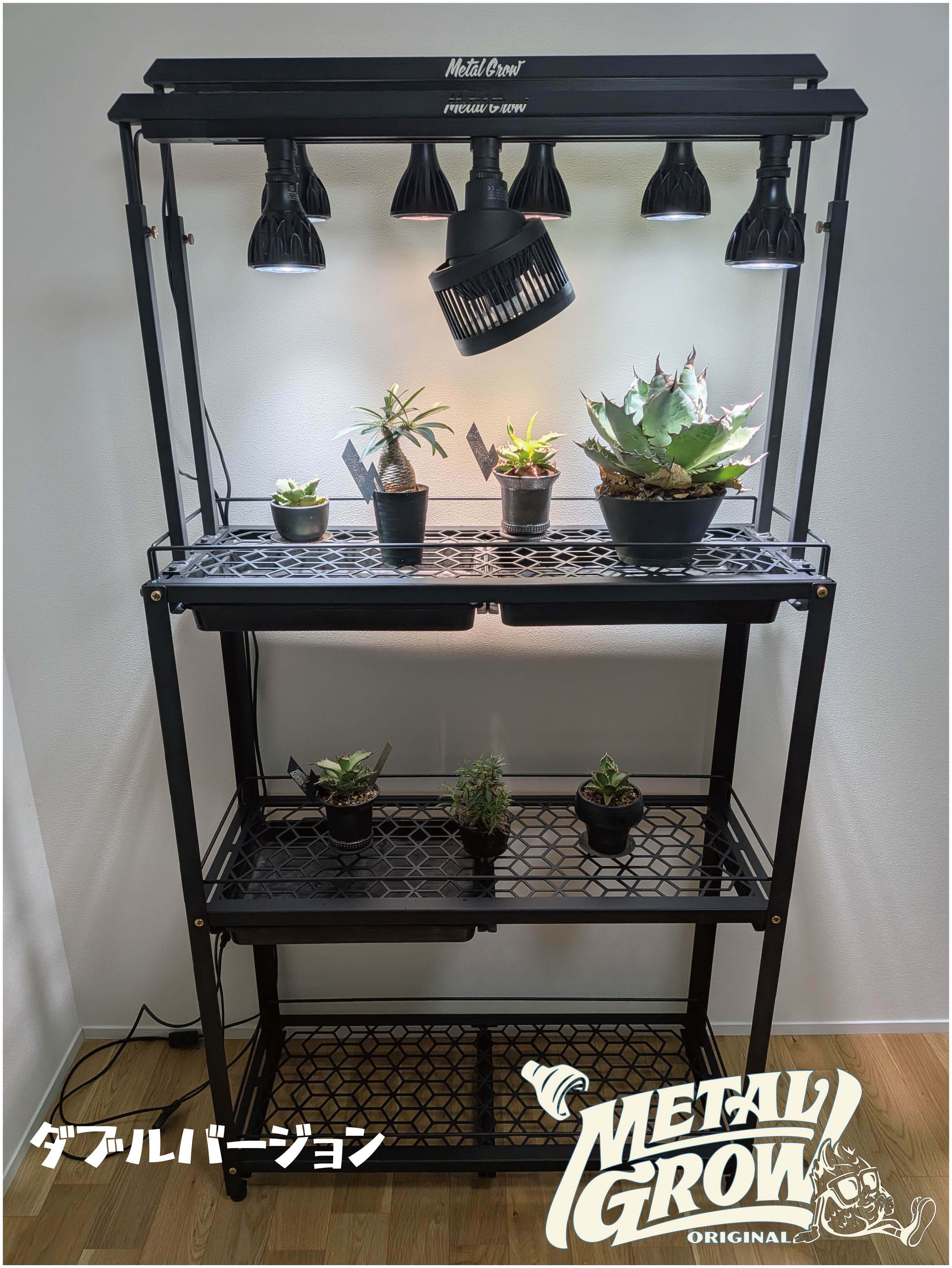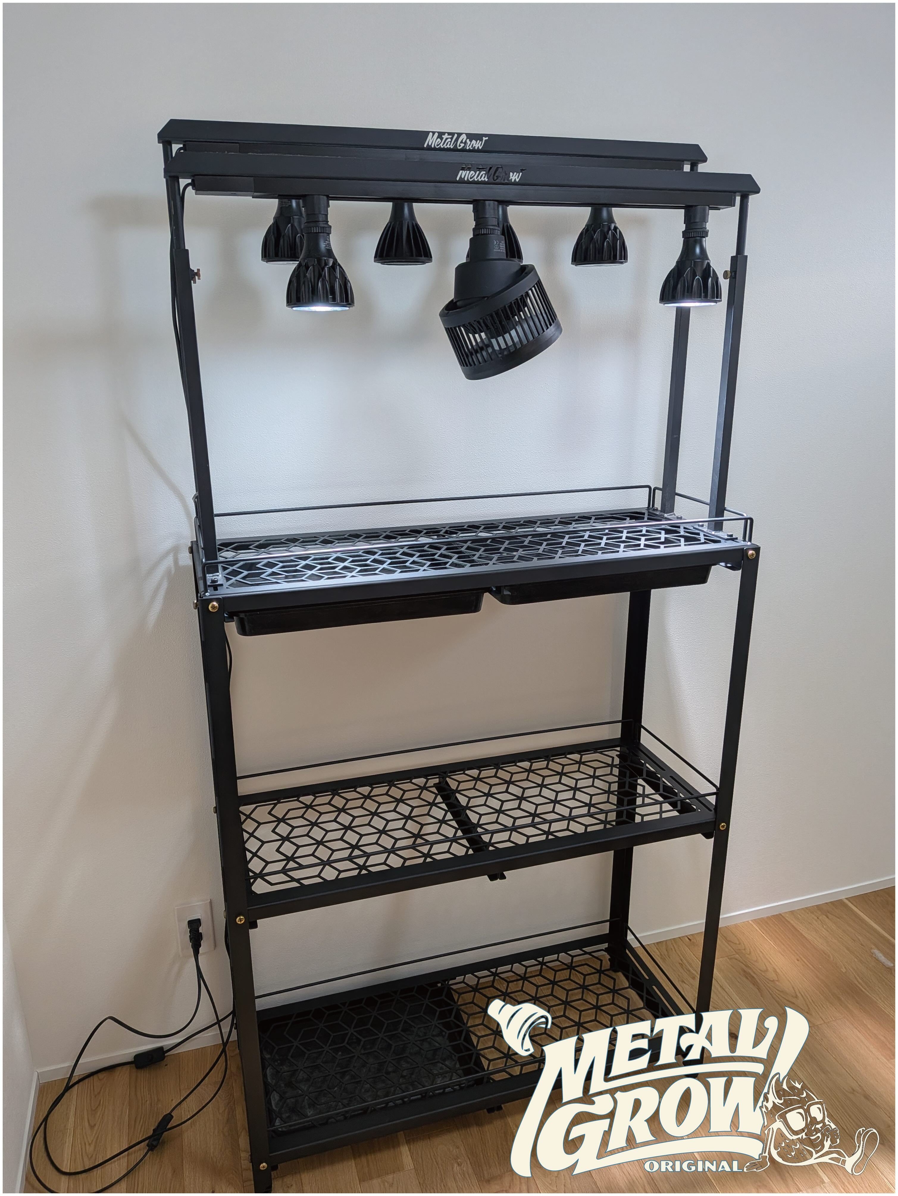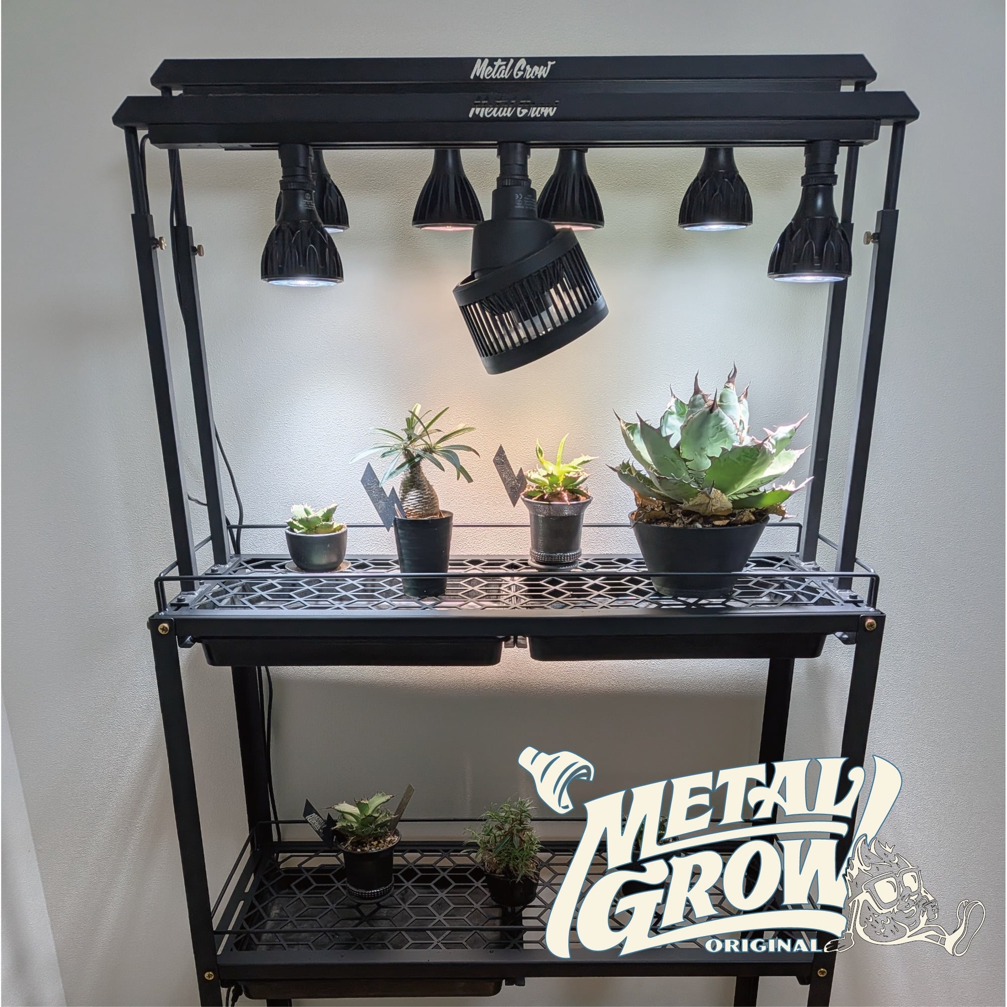 Metal Grow -プラントラック-900-帝 幅350ver 水受け取れー機構付き ライティングレール、専用工具付き、植物ラック 送料全国一律3800円